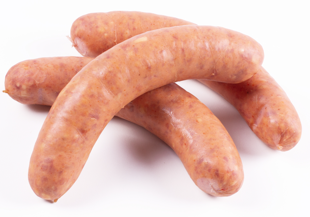 Pork, beef, fine stuffing (pork, beef, nitrite salt, spices, shallot, garlic), cheese (MILK), nitrite salt, processing aids (stabilizer: E450, antioxidant: E301, acidifier: E330, coloring: E120, lemon flavoring), Mixture of spices (spices, sugar, dextrose, spice extract), Natural pork casing