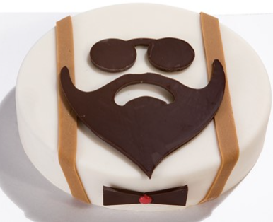 Biscuit aux amandes, crème au beurre Moka. Decor massepain et chocolat noir pur beurre de cacao.