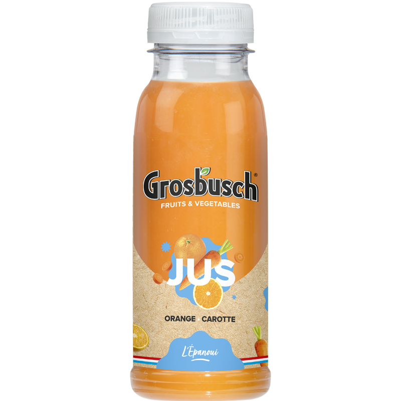 Jus d’orange (40%), jus de carotte (40%), jus de pomme (19%), jus de gingembre (1%)