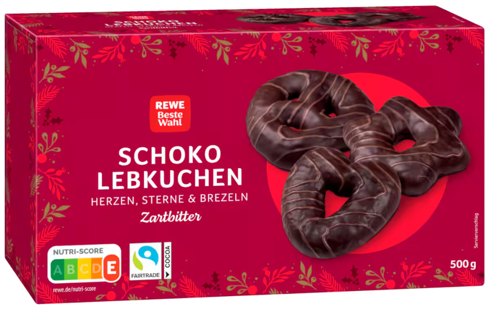 Weizenmehl, Glukose-Fruktose-Sirup, Zucker, Kakaomasse, Kakaobutter, Caramelzuckersirup, Gewürze, Zimt, Backtriebmittel, Sonnenblumenöl, Magermilchpulver, Süßmolkepulver, Butterreinfett, Emulgator, Speisesalz, E501, E450, E500, E322
